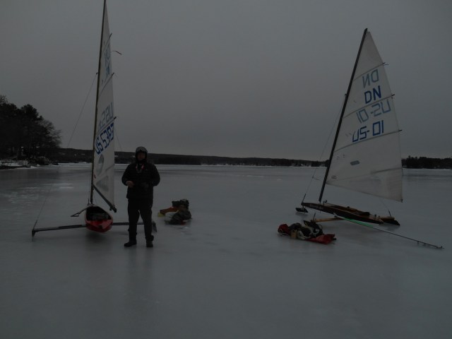 It started snowing about 1 pm so we packed up, but as soon as we got our boats packed up no more snow. That’s ok; we were setting up at 8.30 and we had enough sailing for two old farts. Its 3:25 now and no more snow we will see what the night brings.”