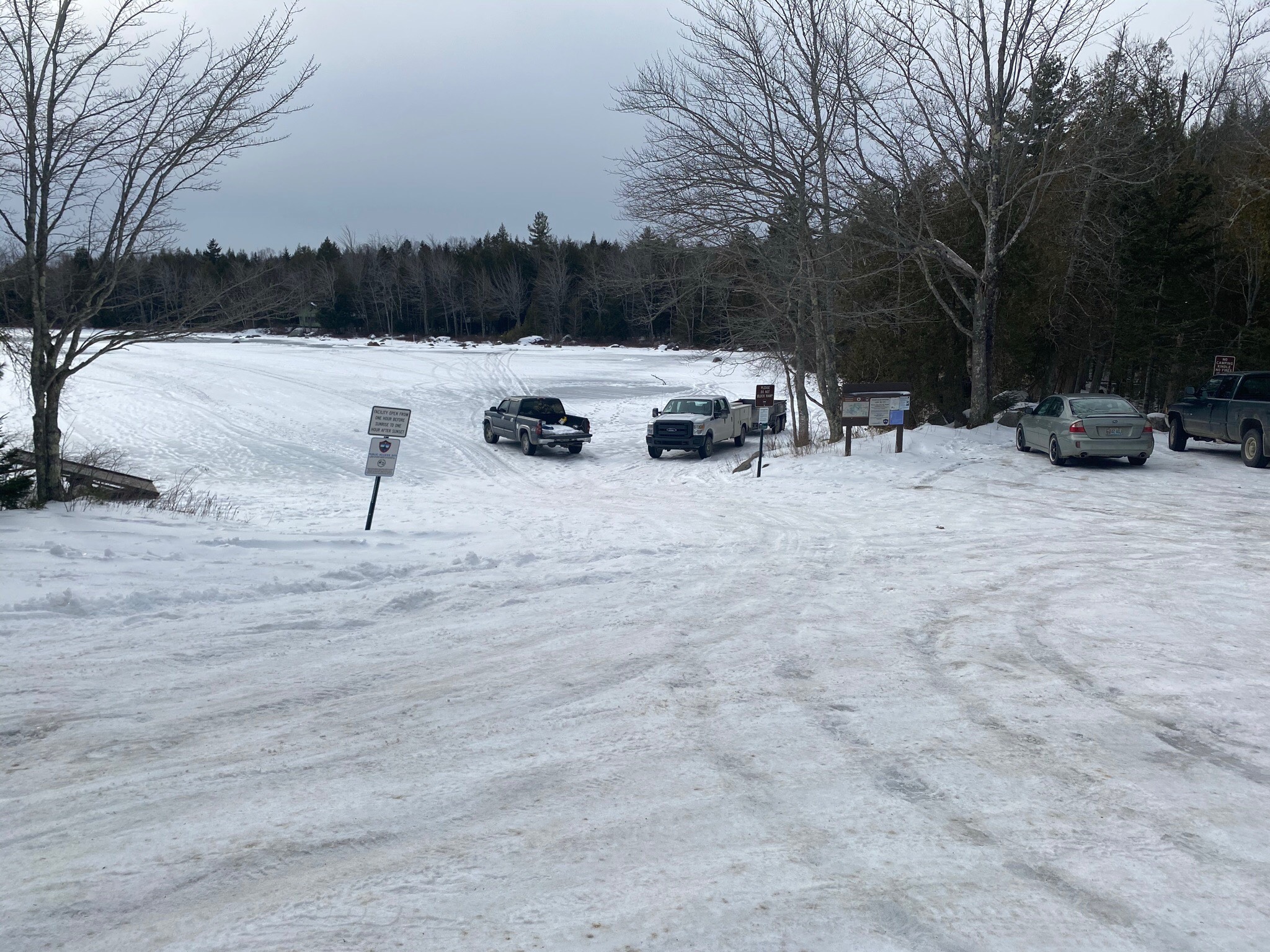 Trucks are parking on the ice, so there’s no reason we can’t drive trailers down the ramp and find a clean place to set up.