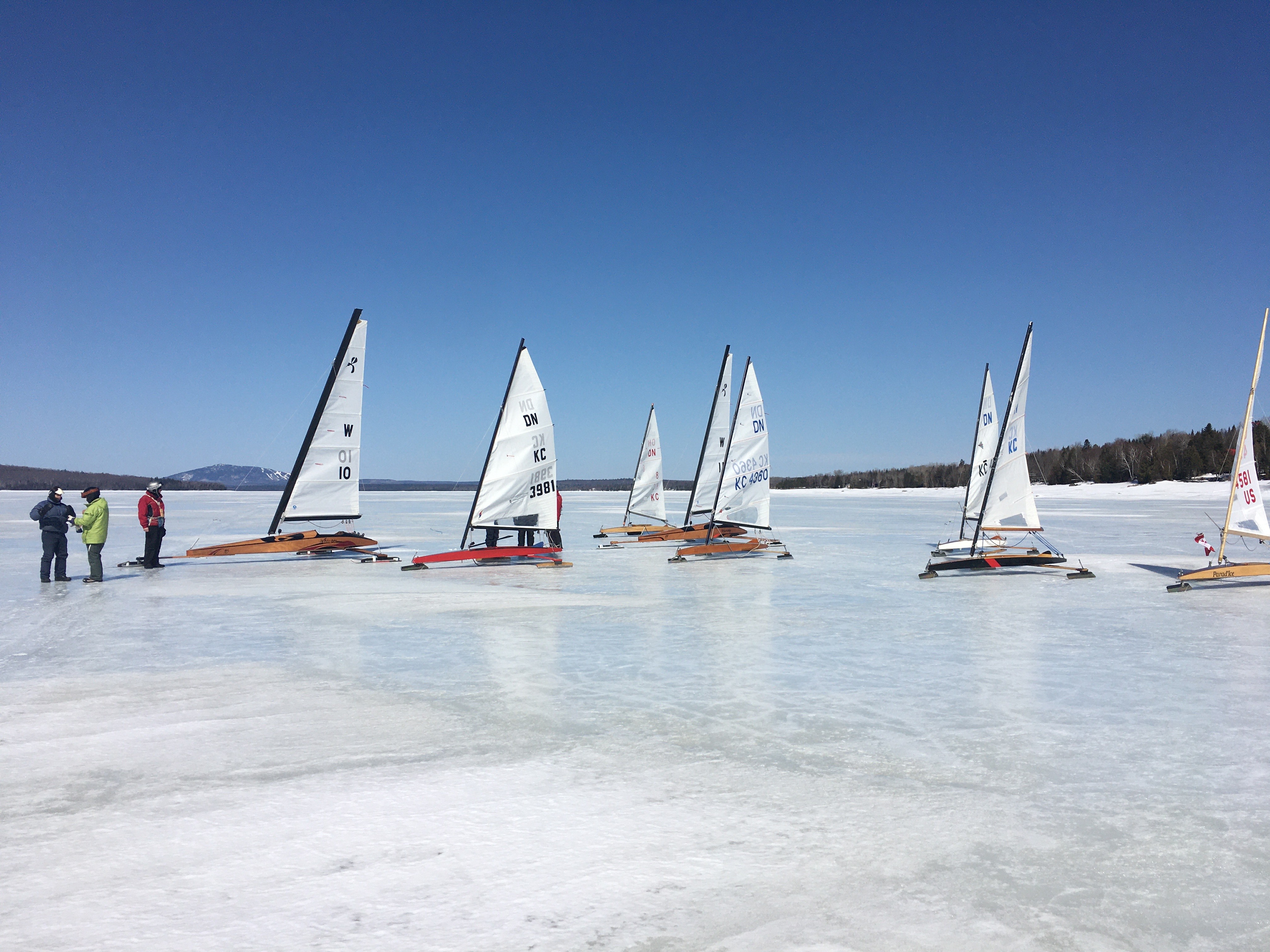 Up north Frank and Denis found decent conditions today on Lac Ste Francois. They sailed well up the lake and met a gang in DN’s heading south from Thedford Mines. They parleyed a while, but as the ice was softening they didn’t hang around too long. They hope for a sunrise cruise tomorrow before things warm up. (see above!)