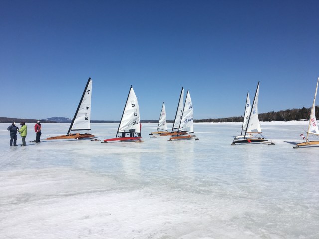 How is it, in this chaotic and crazy world, that the last day of the general iceboating season should end on the first day of spring? Is that not just too perfect? What do we do tomorrow, start gardening? So it would seem. Even at Millinockett there are no nightime temps below freezing for the coming week. Great for wetting out but not hardening up. Greenville is slightly more hopeful, but not great.