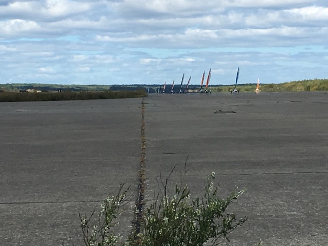 Crossing the tracks sailing uphill. Turns out the best asphalt is actually on the runways: road maintenance is not high on the Authorities’ priorities. The BloKarts set up a start line in the afternoon and practiced dial-ups.