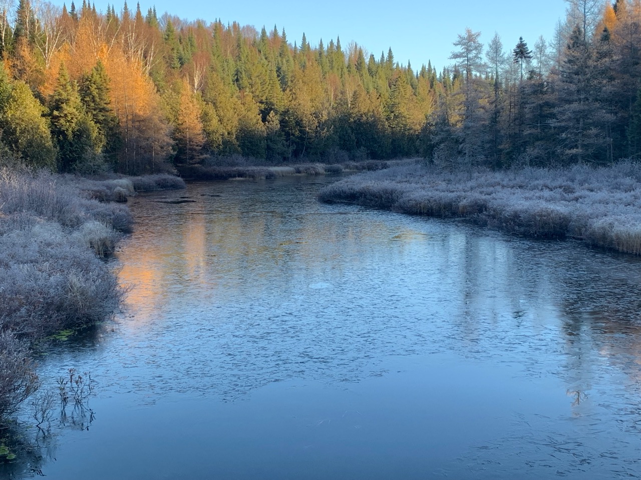 It might be on the other side of the Covid Curtain, which is finally being drawn back, but it’s getting cold. This beautiful picture from Ste. Aurelie was sent in yesterday by Denis Guertin. That’s the charming little village where lacs Abenakis and Joli have given us so much early season joy.