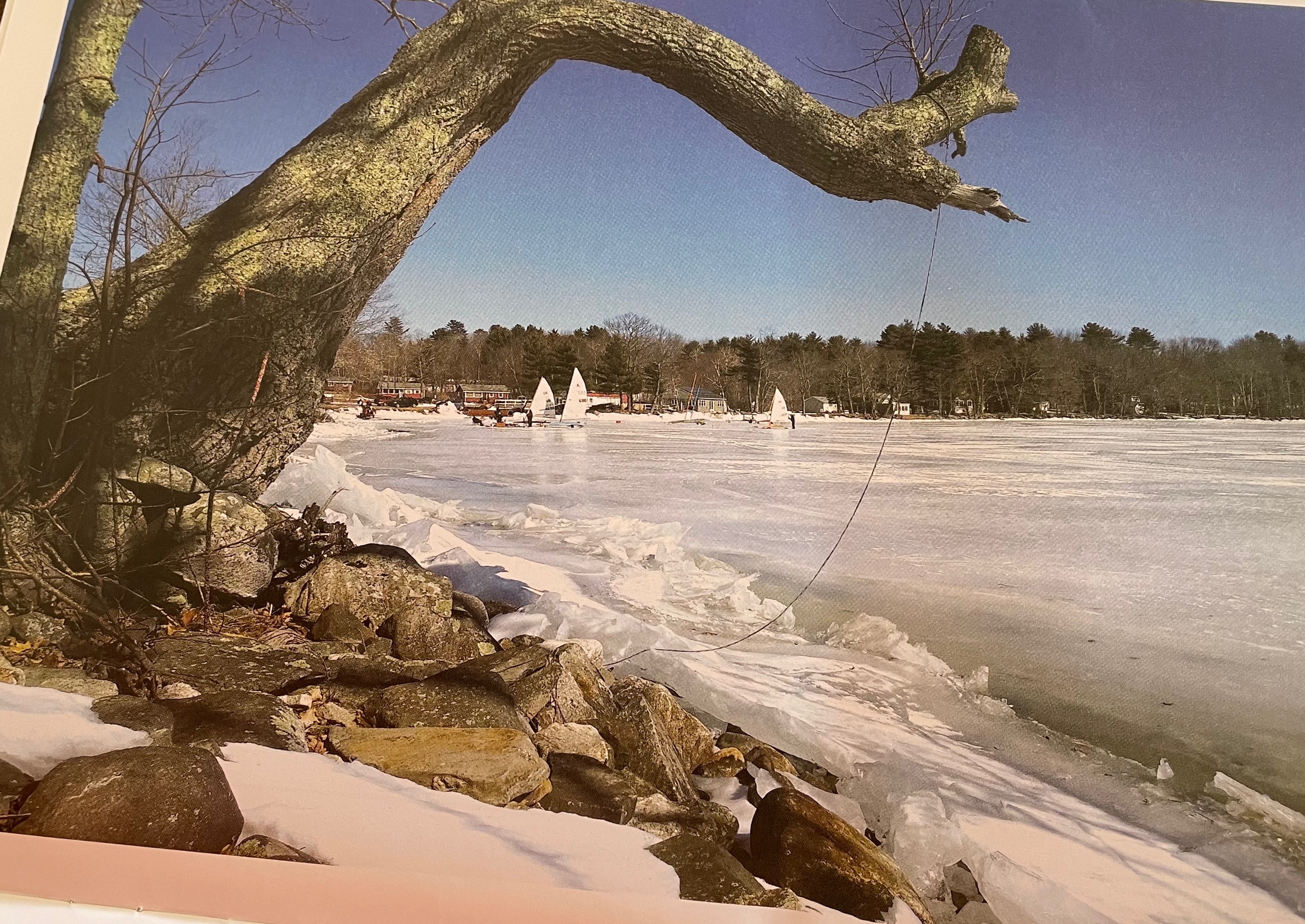 Club supporter and lifetime member Frank Able found this image on the latest Lincoln County News 2022 calendar. It’s the picture for next March, our favorite time on Damariscotta Lake. This is taken at Lake Farm. Can anyone tell who’s boats are these?