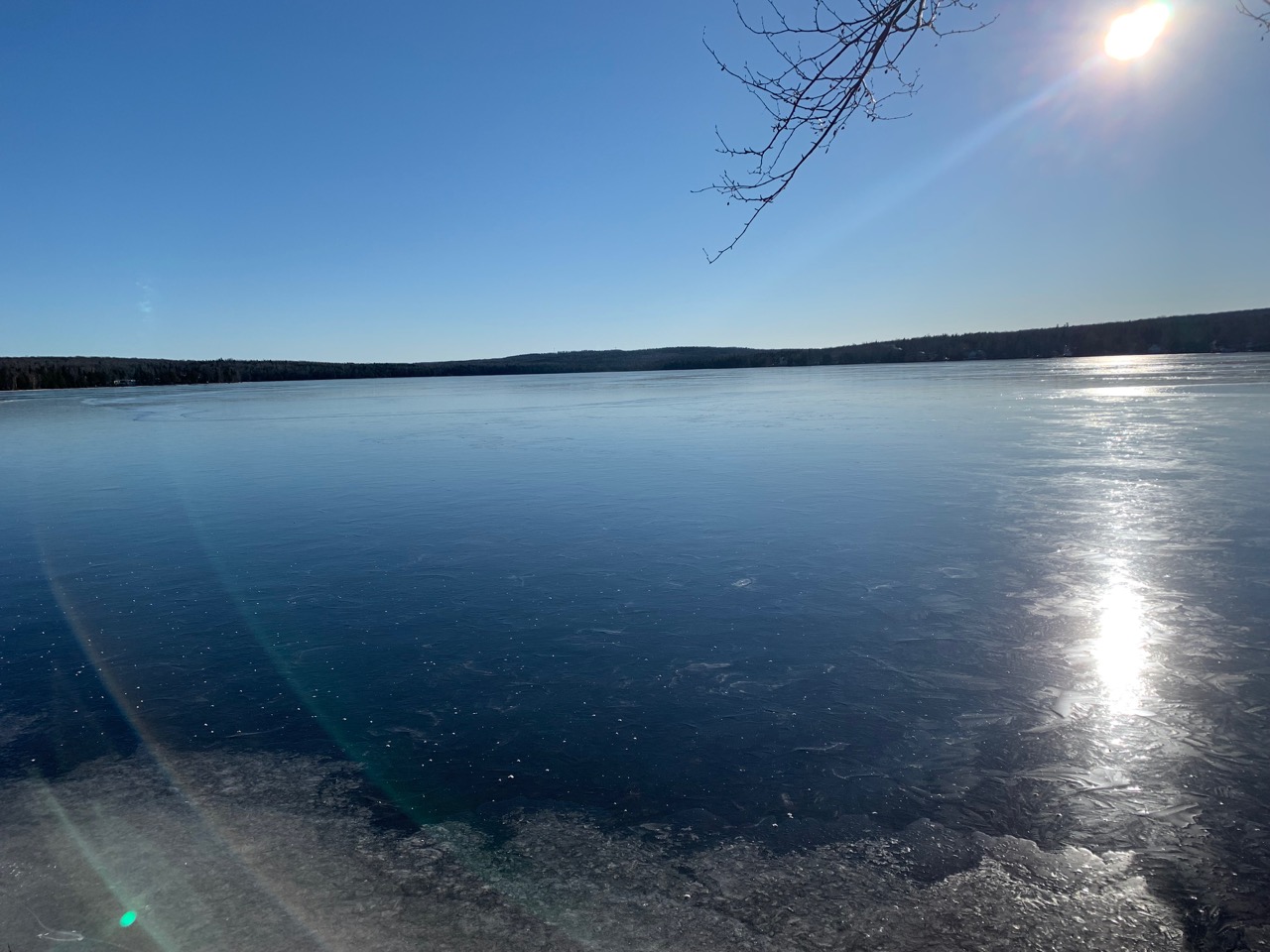 Beautiful black ice on lac Abénakis but only 2’’ thick. From the shore, it seems all skimmed over.