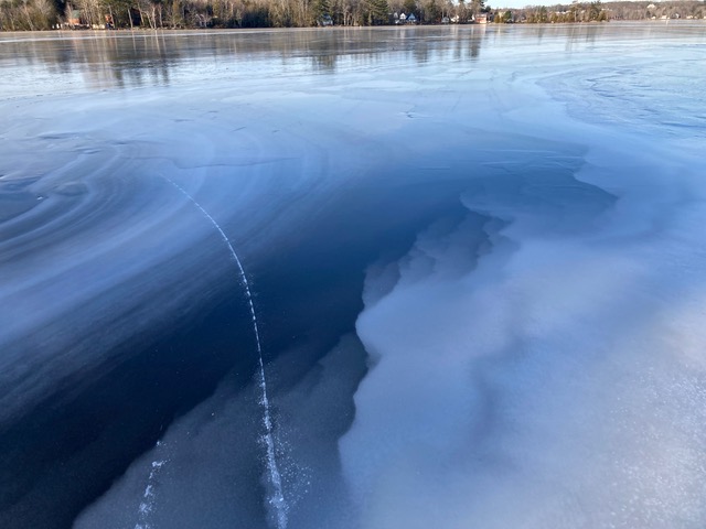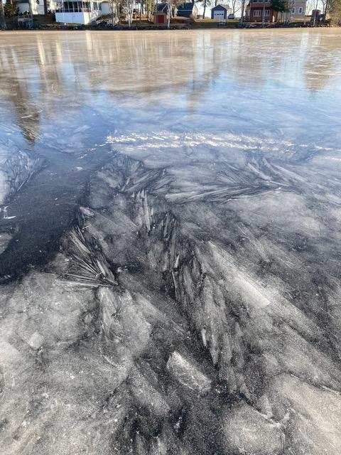 Just like Plymouth Pond last week, we had a one day wonder on Pushaw today. The temps finally dropped back to where they belong this time of year and the lake wound up with between 2 1/4 and 2 3/4”. There were thin areas in the middle as well as some soft water pools. The ice in the photo below was smooth as glass.