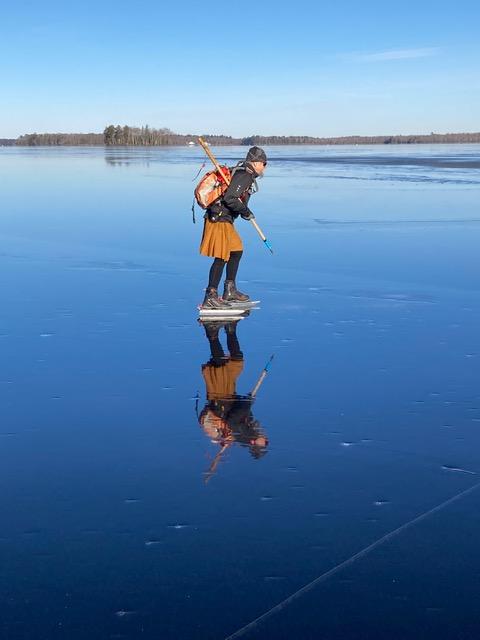 Seven skaters and a set of twins in pram skated the west side perimeter from the bay south of Goulds Landing all the way around to the point at the entrance to Lucky Landing.