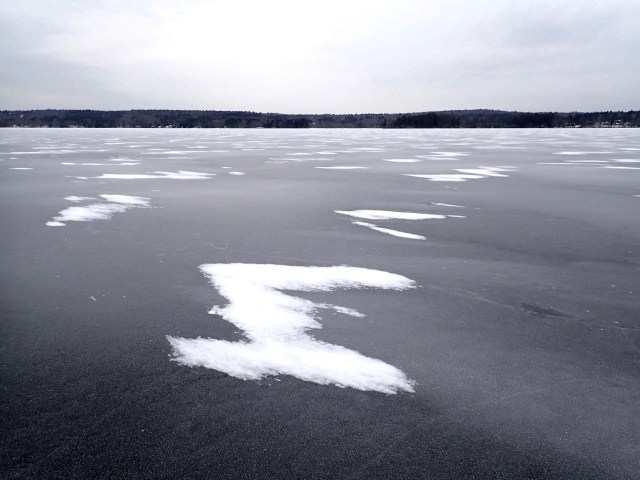 These small drifts, in a Lombardo photo from yesterday, were cast adrift by the howling wind. What was left is just the black stuff you see above. We tacked up to the top of the wind and then peeled off for a mile a minute blast back down. On ice like this the boat can really be pushed to it’s limits, and they were.