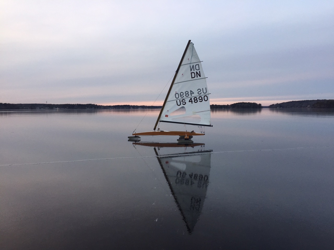 In the what could have been dept., Jeff Soderholm found this amazing plate on Long Pond Lakeville. He had the presence of mind to rush home and get the DN for a late afternoon cruise. Sadly, the latest storm did it in. We haven’t sailed Long Pond in years now. One of the great treats was sailing up to the dock at the Eagles Club and having a snack and a drink at the bar. The switch from wind roaring in your ears, runners clacking across the ice to the soft murmur of conversation with the tinkling of glasses was vertigo inspiring.