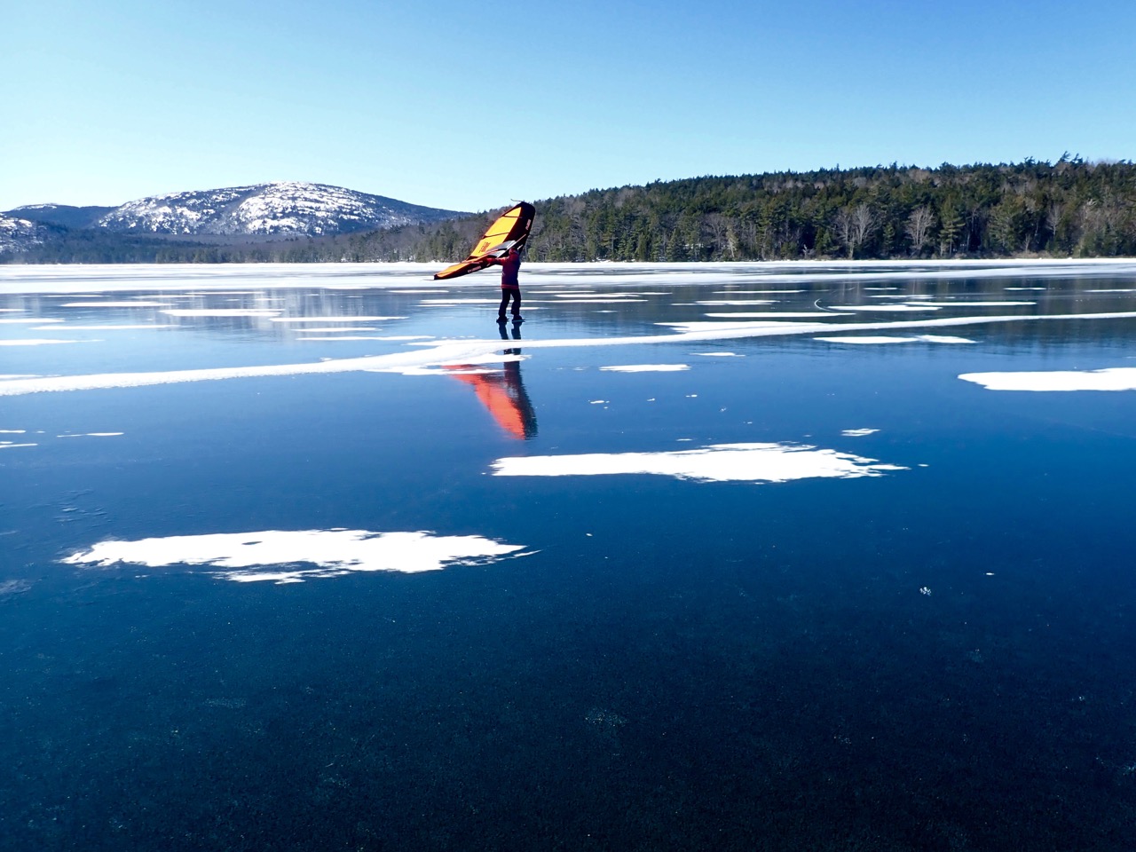 Last week’s heat wave took out most of the small lakes on Mt. Desert Island. They thought they were done for the year, but recent cold nights built fresh ice. This morning Eagle Lake had three inches of perfect ice. The kind of ice you hope for in December and then slowly forget about as the season moves into snow ice and frozen slush, drain holes and pressure ridges.