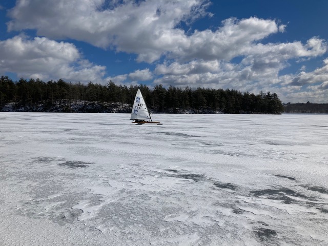 Three older DN’s set up but had a hard time in the snow. Linc Davis got some good runs with his Cheapskate on 1/8” runners. Long 1/8” stainless insert runners would have been perfect for today if they could be made strong enough. Seems like at least once a year conditions would call for such a runner. Perhaps it would allow sailing tomorrow. Alas, we’ll never know until someone builds a set.
