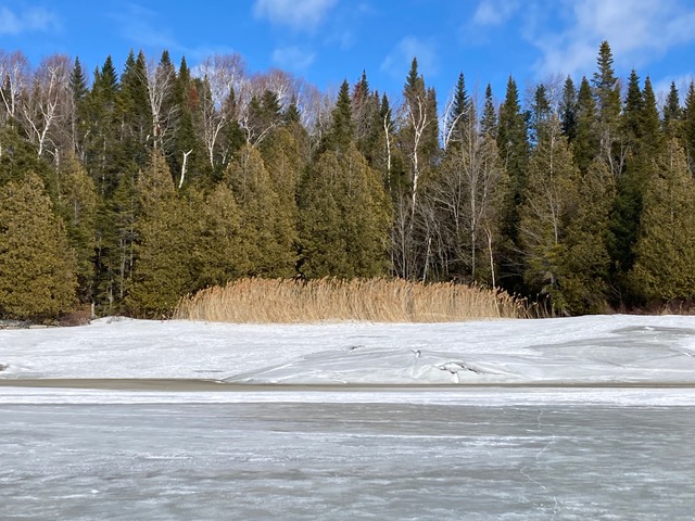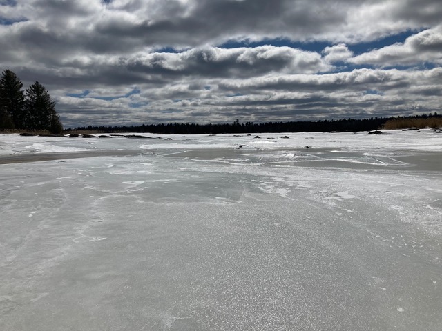 In the summer those fragmite are just about in the water. The ice is dropped 15’ over the course of the winter. But now the lake is beginning to re-filled and the influx of water is coming up around the edges, presenting access challenges.