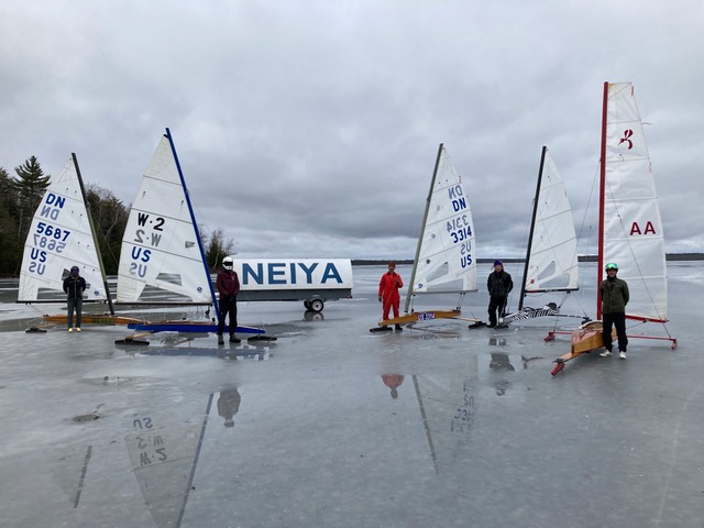 The light air filled in nicely and held until mid afternoon. The sailing was excellent for tuning light air skills, the lake offering a nice upwind downwind orientation. It would be an excellent site for a regatta with great access, shallow water and no nearby hills to mess with the wind. It freezes well before Pushaw, and maybe even Plymouth for all we know.