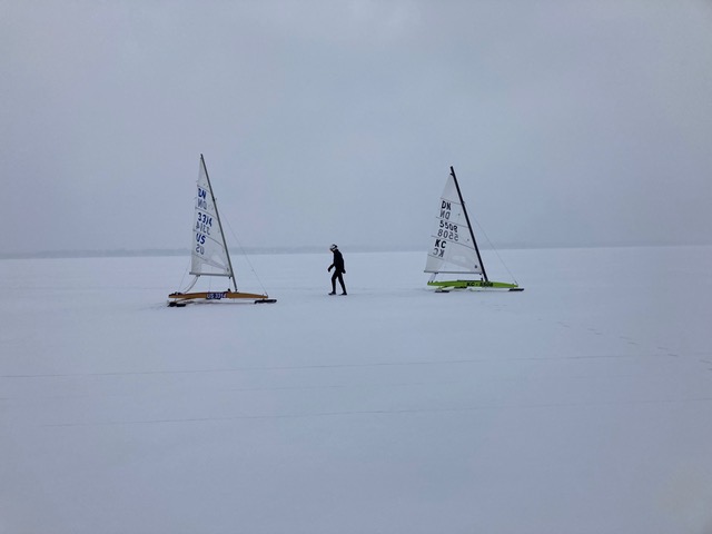 A few bored sailors, braved the light air and snow up to the stiffeners, to try and build deep wet snow light air sailing skills. Not that you’d ever willingly want to deploy such skills, but it was something to do.
