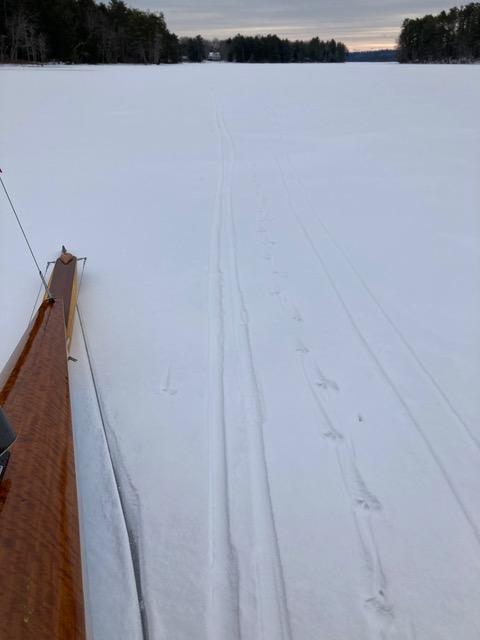 Snow makes the world still. It makes iceboaters sit still, tending the home fire. But all I am asking, is give snow a chance. As we learned in Wisconsin last week, snow can be lots of fun. So what if all your gear is wet and you can’t find that dropped clevis pin. In the right conditions it can be amazing. Snow stilled runners today. It was just light enough and the ice just soft enough to create a running surface that made no noise. There was an occasional bump or crack, but aside from that only the rush of the wind. The entire lake was the same top to bottom.