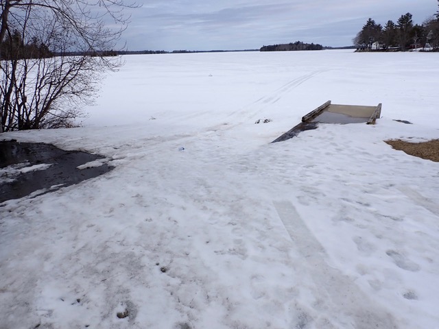 Below, the launch at Goulds Landing is tight to the shore. No evidence of water around the edge: