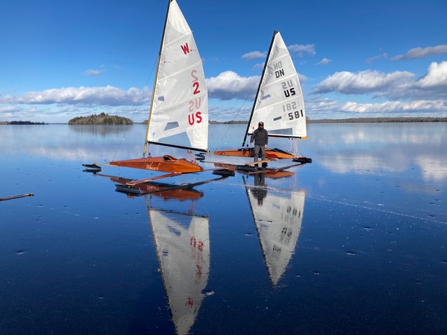 Boats are on the ice and sailing is on for tomorrow. The ramp is thin ice. Be careful. Potential for a proper course is limited with the forecast wind direction, but the course mentioned above is just about right.