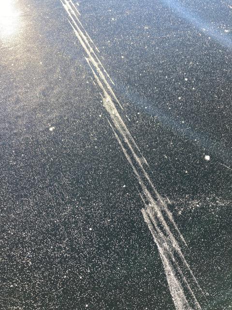 How hard was the ice? This poor runner, above, tried so hard to hang in there but just kept hopping along. This track extended for about a hundred feet approaching the leeward mark.