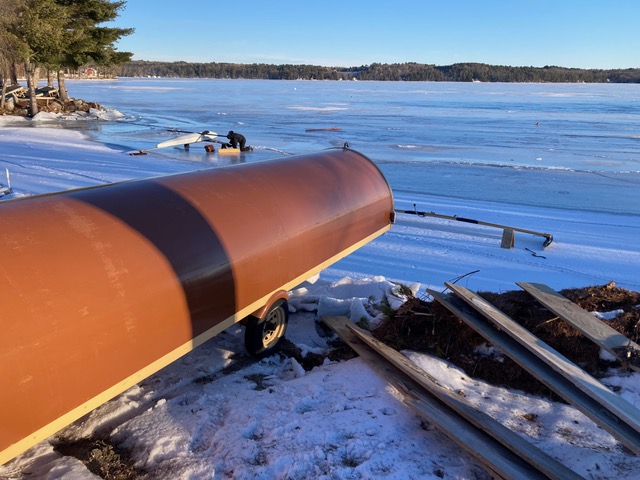There is a pressure ridge at Wavus Point and one at the north end of Muscongus Bay. Both crossable. Some open water just opposite Camp Kieve on the approach to the river. Keep left.