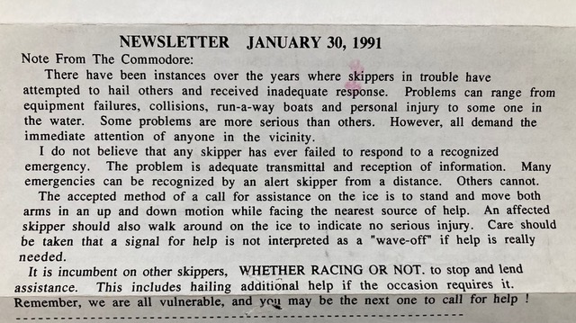 Lloyd Roberts wrote these wise words over thirty years ago. They still ring true today: get your eyes out of the boat and scan. Meet the eyes of any passing boat. Check for messages.