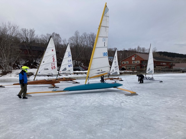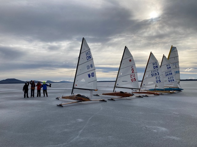 A special tip of the hemet goes out to Dan Stillman who is sailing Leo Healy’s old DN. Leo would have been honored and thrilled to see his boat take part in such an amazing tour, sailed by a guy who just started out the season in a Cheapskate. Leo was the founder of Winnepesaukee, The Hard Way. Anything we do on Moosehead holds a great debt of gratitude to him and all he taught us about how to get a fleet of iceboats from one end of a big lake and back intact. This tour logged a tad over 100 miles, boats and smiles intact.