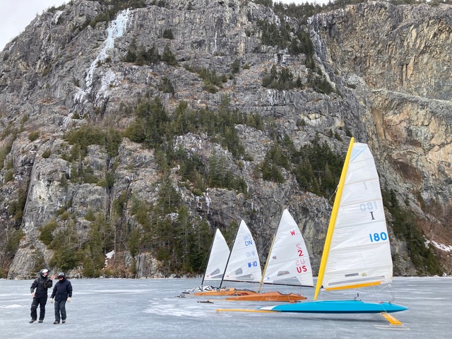 A special tip of the hemet goes out to Dan Stillman who is sailing Leo Healy’s old DN. Leo would have been honored and thrilled to see his boat take part in such an amazing tour, sailed by a guy who just started out the season in a Cheapskate. Leo was the founder of Winnepesaukee, The Hard Way. Anything we do on Moosehead holds a great debt of gratitude to him and all he taught us about how to get a fleet of iceboats from one end of a big lake and back intact. This tour logged a tad over 100 miles, boats and smiles intact.