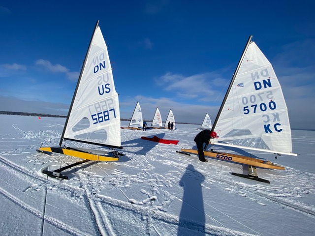 Now for the past two days seven DN’s have been scratch racing, tuning, comparing notes and helping each other to go faster. These are guys who will be competing against each other this coming weekend at the Western Challenge, but more importantly, competing at the highest levels at the Worlds later this season. Great sportsmanship, and iceboating at it’s real best.