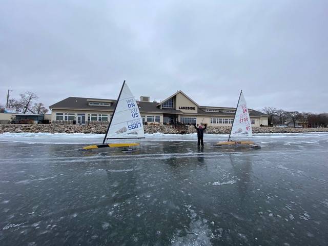 Roseberry and Chamerland have settled in nicely at Lake Winnimuska, Starbuck MN, site of last weekend’s Western Challenge. After a week of non-stop scratch racing, and the regatta on the weekend, they have the lake pretty much to themselves. They found a great deal on rooms; cheaper than living at home, according to Paul. They also have time now to do a little touring, and came across The Lakeside Inn. Waterfront dining is always the holy grail of the cruising iceboater.