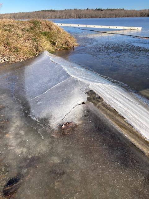 Plymouth survived the lashings of rain and wind this past Wednesday. There is a six foot skimmed over moat near the launch, but the plate itself is a consistent 2” out about 150’. There were a few drain holes with 3/4” on them.