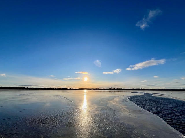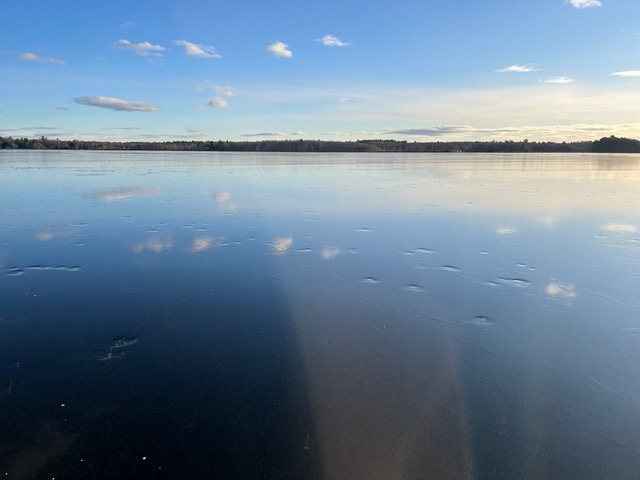 Damariscotta Lake has open water top and bottom, with various ice thicknesses here and there. Not great.