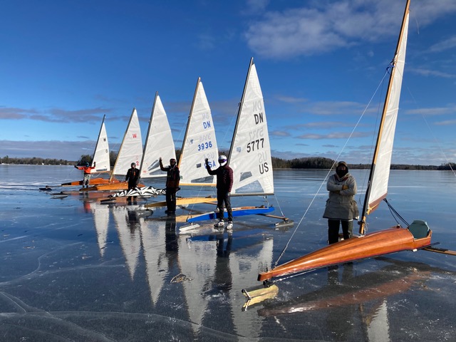 After a week of gale winds, snow squalls, and multiple trips across the border, the wind settled down just enough to give our small fleet multiple fast laps of the lake. The surface was excellent, with only a few wind holes, easily spotted.