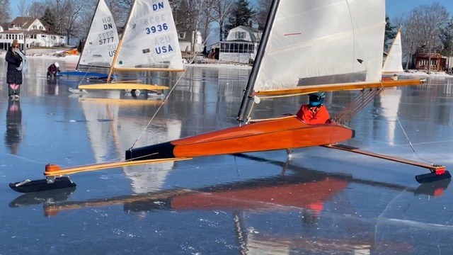 After a week of gale winds, snow squalls, and multiple trips across the border, the wind settled down just enough to give our small fleet multiple fast laps of the lake. The surface was excellent, with only a few wind holes, easily spotted.