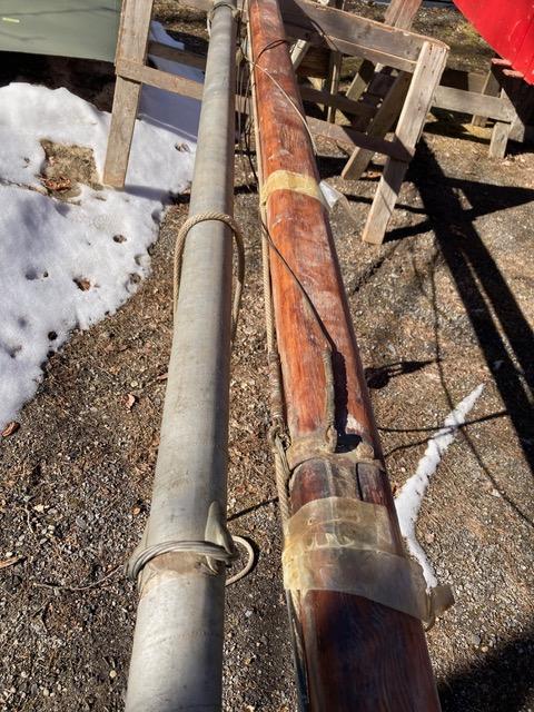 Mast is 20’, boom is wood spiraly wrapped in something, not fiberglass.