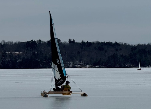 He built Cheapskate runners, made some good rig modifications, but by the time they showed up the ice was soft and the 1/8” Cheapie runners didn’t have a chance. They were mildly discouraged, to say the least, but a sympathetic sailor loaned them a set of slush runners and the boat just took off. Vlad characterized the feeling as “intoxicating”. Sounds like they are “in”.