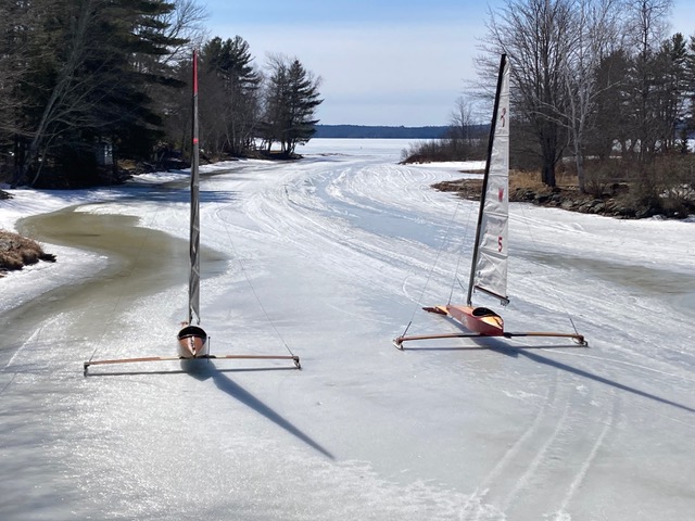 He built Cheapskate runners, made some good rig modifications, but by the time they showed up the ice was soft and the 1/8” Cheapie runners didn’t have a chance. They were mildly discouraged, to say the least, but a sympathetic sailor loaned them a set of slush runners and the boat just took off. Vlad characterized the feeling as “intoxicating”. Sounds like they are “in”.