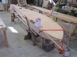 - Cleats are added to all the lower edges to provide gluing surface for the bottom. Back aft we;ll use fillets, as the access is good we don’t want to bother with steaming the long cleat.