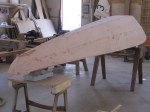 - Sides and deck in place. The battens at the seams are stapled from the inside to help keep the seams fair. Very difficult with eighth inch ply. The seams are now filled with epoxy