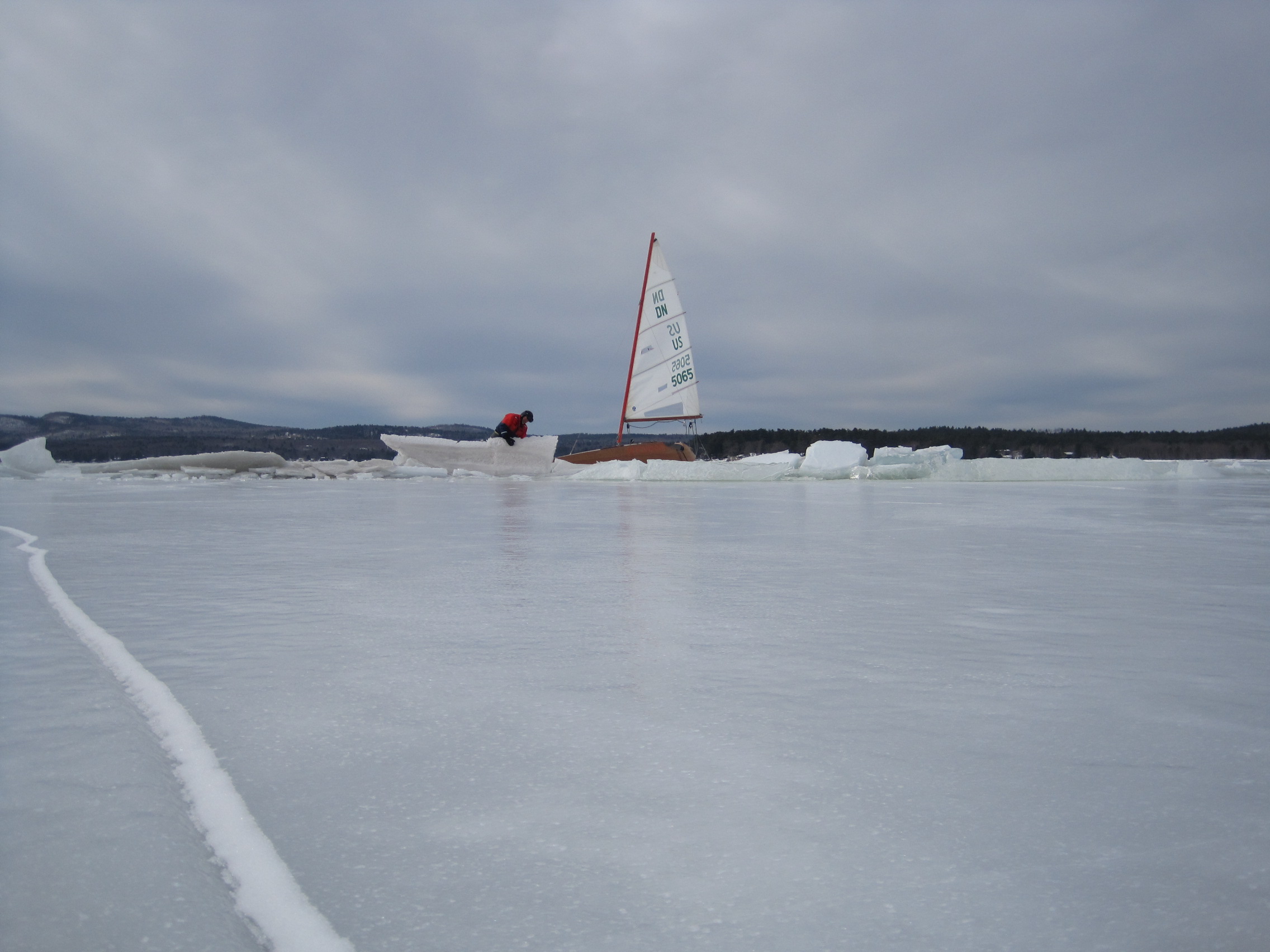 Jory attempting to dismantle the pressure ridge on Sebago.