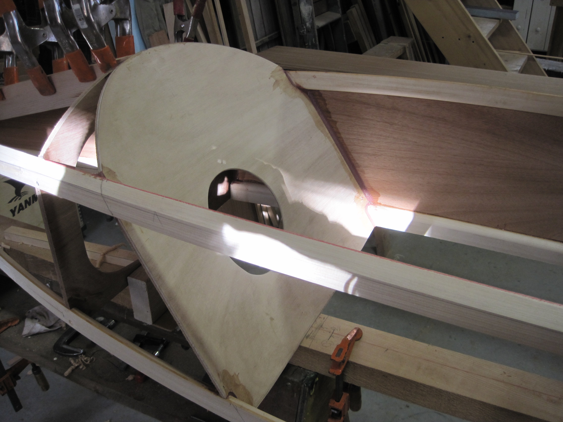 Seat back laminated from two pieces of 1/8″