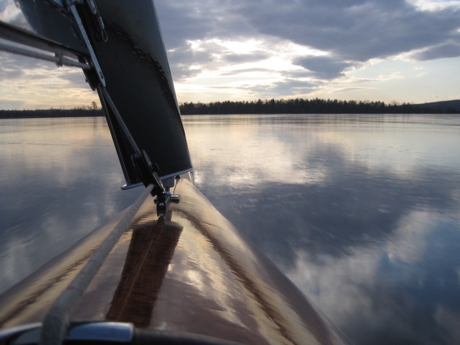 Sunset across the bow on Plymouth Pond